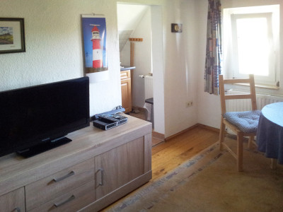 Sie verfügen hier über eine Küche mit Kühlschrank, 4-Platten Herd, Ofen und zahlreichen Küchenhelfern, ein Bad mit Dusche und WC und im Wohnzimmer Sat-TV. Zudem bietet diese Ferienwohnung ein separates Schlafzimmer mit großem Doppelbett.