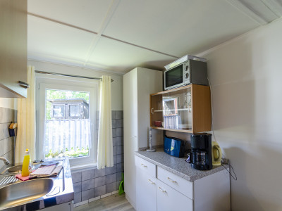 1 Küchenzeile mit 2-Platten Kochfeld, Wasserkocher, Kaffeemaschine und Toaster