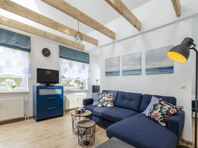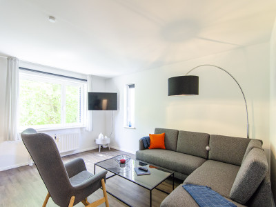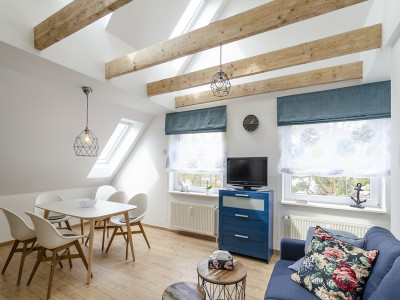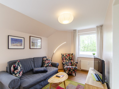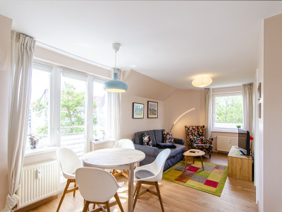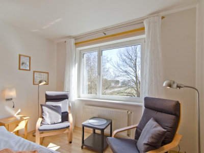 Zentral gelegene Ferienwohnung in Vitte mit Blick zum Hafen und auf den Wiesenweg.