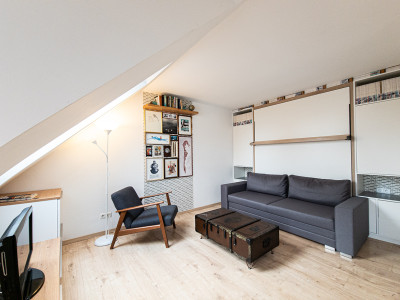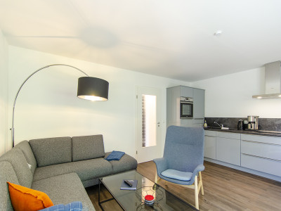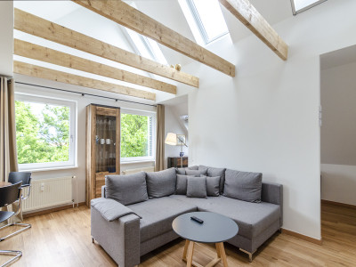 1 Wohn- Essraum mit Couchgarnitur (Aufbettung für 2 Personen) und Esstisch sowie Sat-TV